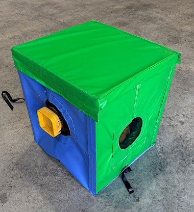 Dimensions du caisson : 0.65x0.65x0.60mH (trou de 0.25mD) - en cours de fabrication - Pour structure gonflable norme NF EN14960.1/2019