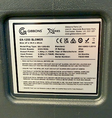 Léger - e nouveau GX-1250 intègre les dernières innovations en matière de gonfleurs pour structures gonflables dans un boîtier en plastique durable, léger, résistant aux UV et ignifugé, conçu pour un usage quotidien intensif.