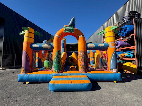 Structure gonflable occasion sur le thème du surf et de la mer, nettoyée, vérifiée, contrôle annuel RPII Garantie 3 mois ASG34 - "Gamme SIGNATURE"