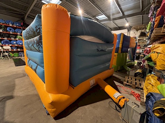 Château 5mx4m gonflable d'occasion sur le thème de CAMPING PARADIS, nettoyée, vérifiée, contrôle annuel RPII servie 3 mois. "Gamme SIGNATURE"