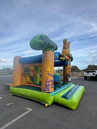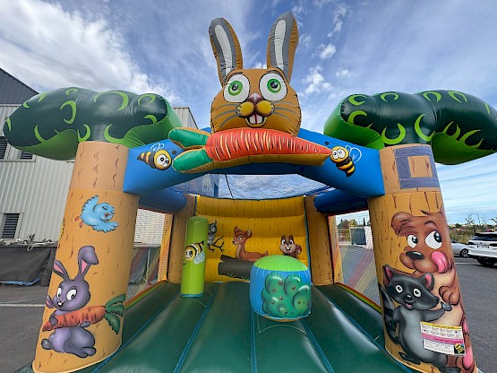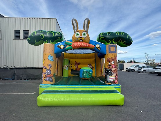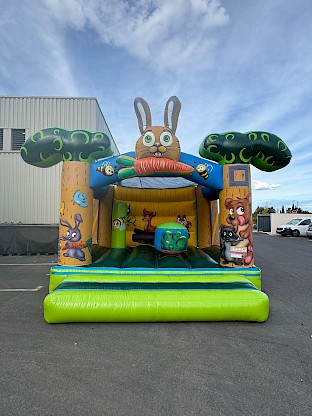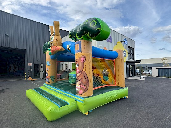 Structure gonflable occasion theme foret, nettoyée, vérifiée, controle annuel RPII Garantie 3 mois ASG34 - château gonflable d'occasion 4x4m - "Gamme SIGNATURE"