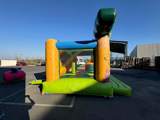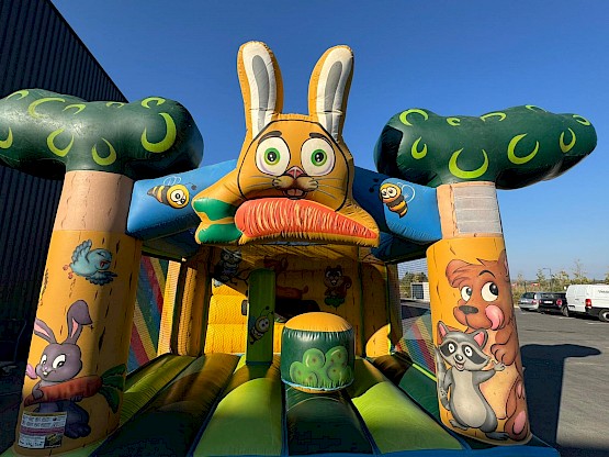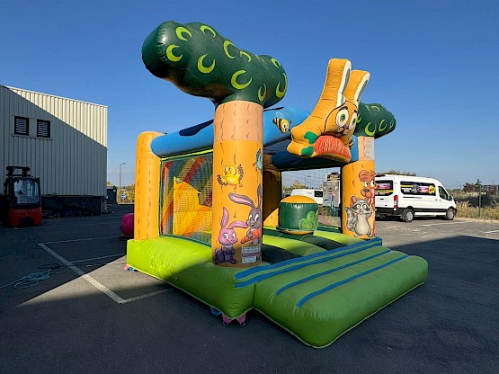 Structure gonflable occasion sur le theme de la foret, nettoyée, vérifiée, controle annuel RPII Garantie 3 mois ASG34 - château gonflable d'occasion 4x4m - "Gamme SIGNATURE"