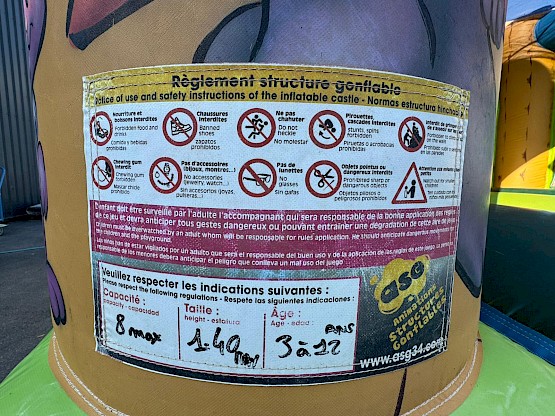 ASG34 vous propose cette gamme de jeux professionnels, de conception & fabrication Européenne, de grande qualité, qui répond aux exigences de la Norme NF EN14960, disponible rapidement suivant état des stocks et planning de fabrication - Vente Animation Structure Jeu Château Gonflable BESSAN, Hérault 34, occitanie, France. Nous avons la possibilité de fabriquer des jeux selon votre imagination. Autres photos disponibles sur simple demande, Plusieurs thèmes possibles pour ce produit. + d infos au 06 81 210 283 ! Nos jeux s’adressent aux professionnels tels que campings, HPA, parcs indoor ou outdoor, loueurs, associations, collectivités, et toutes activités de loisirs... devis gratuit!