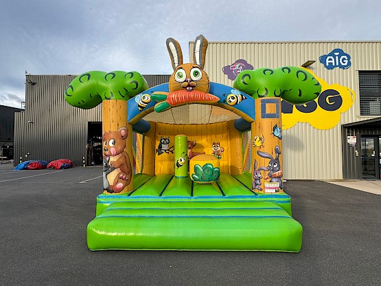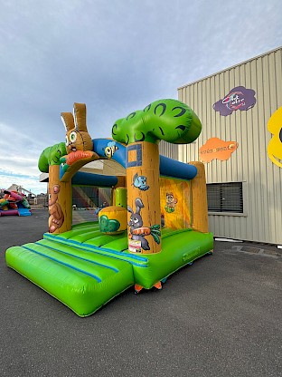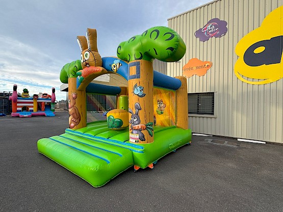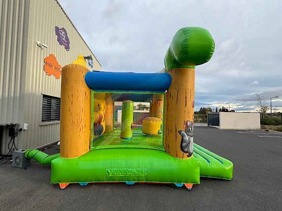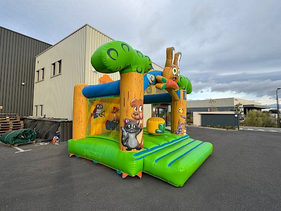 Structure gonflable occasion theme foret, nettoyée, vérifiée, controle annuel RPII Garantie 3 mois ASG34 - château gonflable d'occasion 4x4m - "Gamme SIGNATURE"