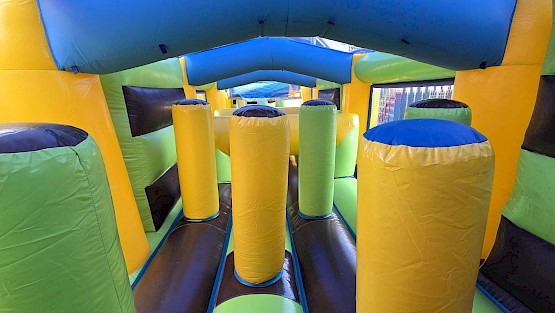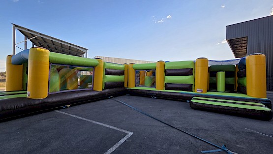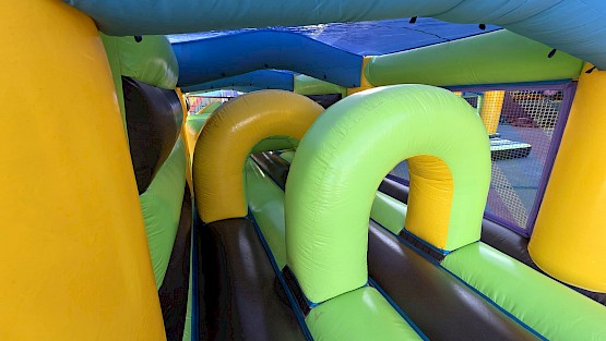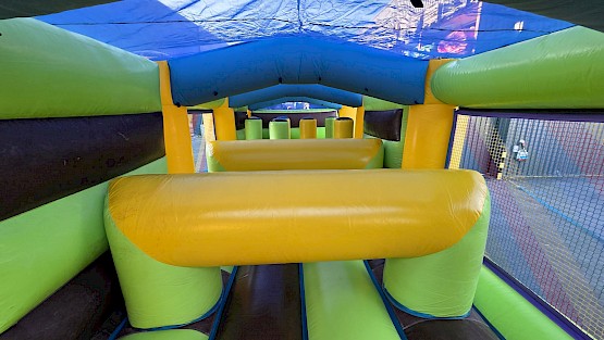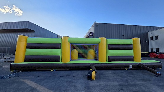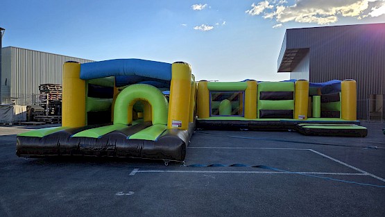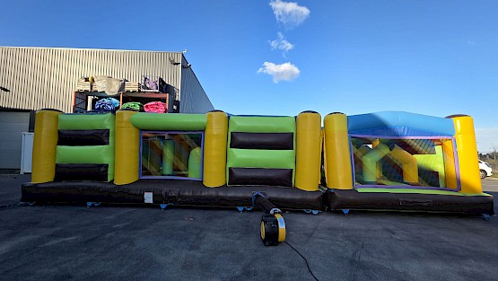 Structure gonflable obstacles 23.0m de long en L occasion en preparation, photos completes a venir, aux normes EN14960. garantie 6 mois, nettoyée, vérifiée, et controle annuel, avec un dossier de conformités.