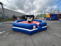 Attraction gonflable d'occasion en cours de nettoyage et préparation, aux normes EN14960. garantie 6 mois, nettoyée, vérifiée, et controle annuel, avec un dossier de conformités.