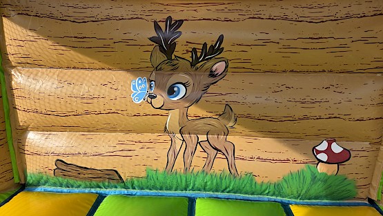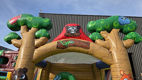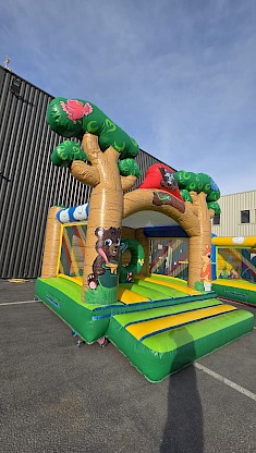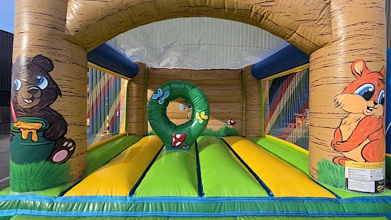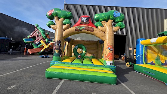 Jeu gonflable neuf , norme en14960, certifié rpii. Château 4x4m gonflable foret champetre- Stock neuf dans l'Hérault à Bessan - "Gamme SIGNATURE" -