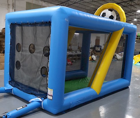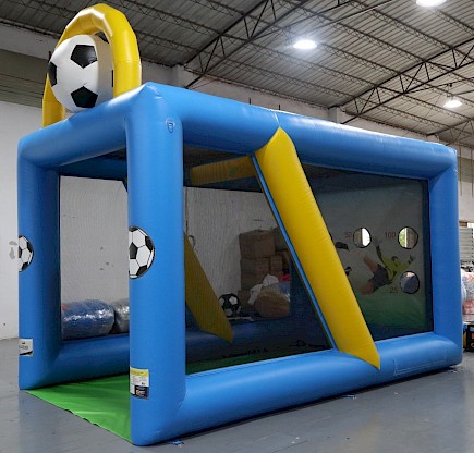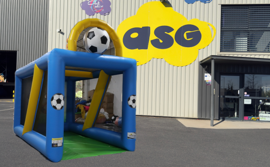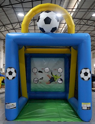 Tir au but gonflable football neuf gamme access.. 5m de longueur, "cage" de 3m x 3m, 5 trous pour marquer ! Vendu neuf avec accesssoires et soufflerie. Idéal pour parc de loisirs, kermesses, événements festifs comme fêtes de village.
